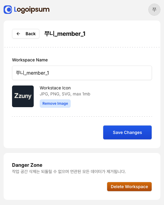- 캐스케이드 삭제 예정: 워크스페이스 삭제 시 연관된 멤버, 프로젝트, 작업도 함께 삭제 (현재 TODO)