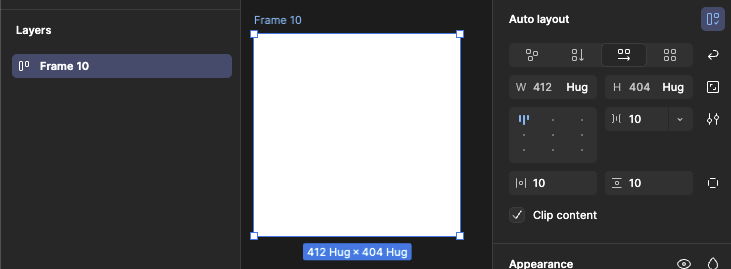 - 프레임의 크기를 내부 요소의 크기에 맞춰서 자동으로 조절하는 속성.