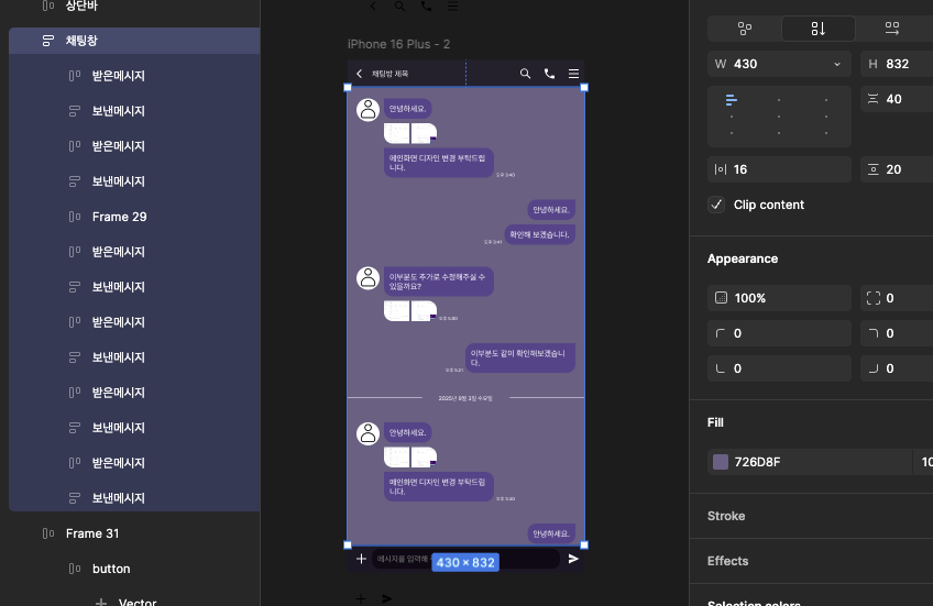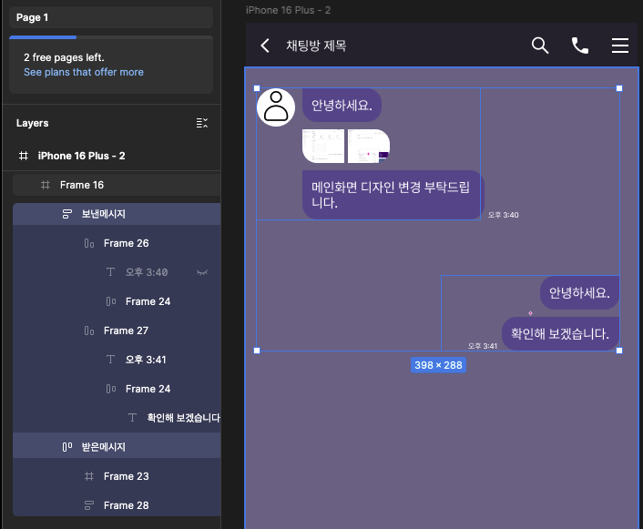 대화박스는 입력양에따라 길이가 변하니까 text에 Auto Layout을 줘서 디자인한다.