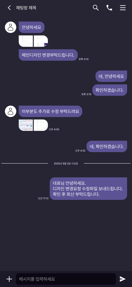 보낸 메시지를 만들기위해 대화창 한줄을 복사해서 가져온 후 위치를 바꿔준다.(박스 라운딩도 수정해준다).