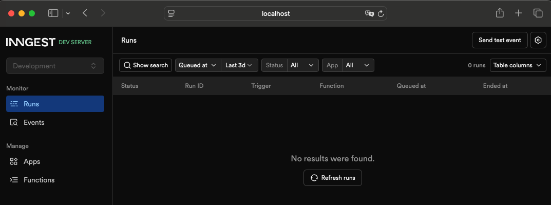 실행 후 http://localhost:8288/runs 에서 백그라운드 작업을 모니터링할 수 있다.