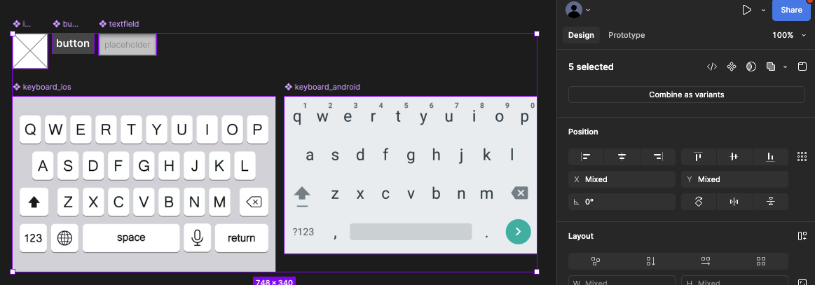 - 비슷한 컴포넌트들을 Combine as Variants 기능으로 묶으면, 한 그룹 안에서 다양한 상태를 관리할 수 있다.